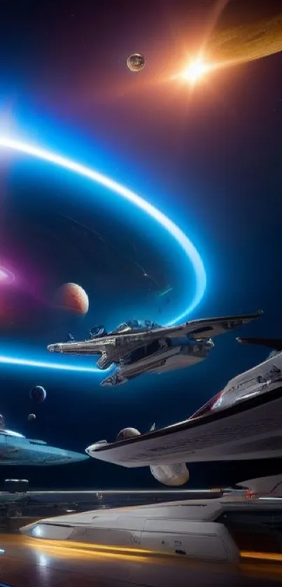 Explore the cosmos with this stunning mobile phone wallpaper featuring futuristic spacecraft and celestial bodies, perfect for sci-fi lovers seeking a cosmic escape