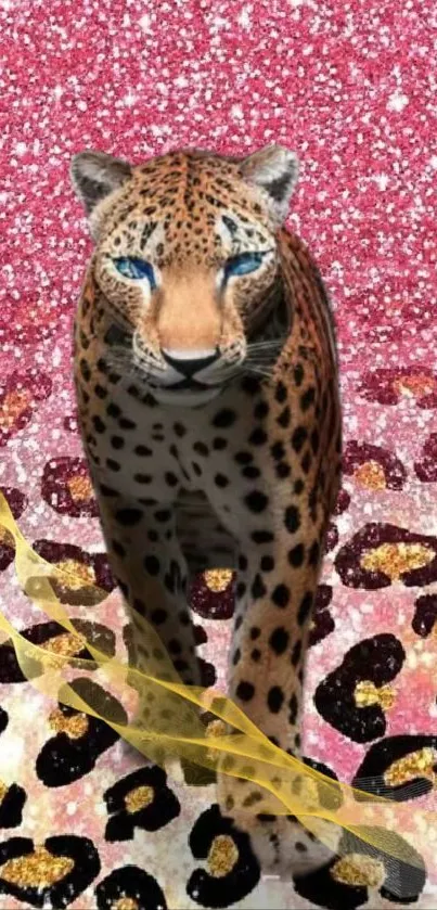Download this stunning mobile wallpaper featuring a majestic leopard against a glittering backdrop, perfect for adding a touch of elegance and wild beauty to your device screen