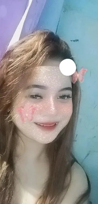 Enhance your phone's look with this glittery butterfly filter wallpaper featuring vibrant colors and an artistic design, perfect for creating a lively atmosphere on your mobile screen
