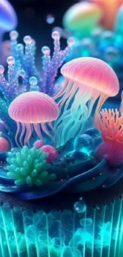 Experience a mesmerizing blend of art and nature with this glowing jellyfish fantasy wallpaper, perfect for mobile screens