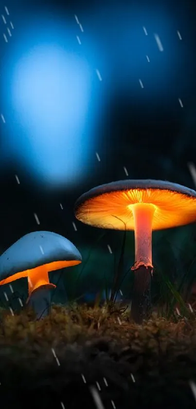 Discover the enchanting glow of mystical mushrooms in a serene forest setting, perfect for your mobile wallpaper. This captivating image combines nature's beauty with a surreal luminescence, creating a unique visual experience for your device. Download now for an eye-catching background