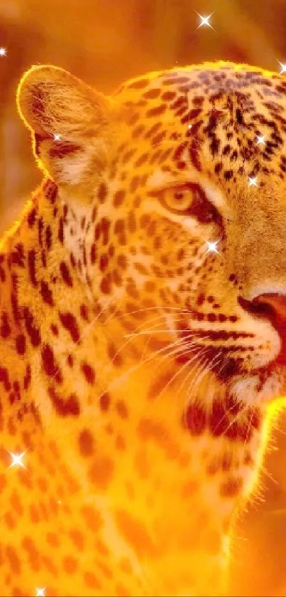 Download this stunning mobile wallpaper featuring a majestic leopard bathed in golden light, perfect for nature and wildlife enthusiasts seeking a captivating and vibrant background for their device