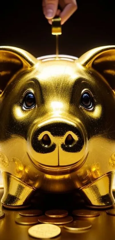 Shiny golden piggy bank with coins, perfect for financial inspiration and wealth goals