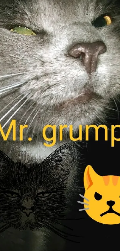 Download this amusing dark cat wallpaper featuring Mr. Grumpy's witty expression for your mobile. Perfect for cat lovers and those who enjoy a touch of humor in their backgrounds, this wallpaper brings a unique, engaging aesthetic to your device's screen while maintaining a minimalist look