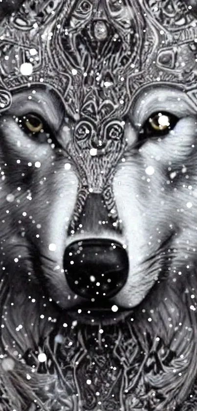 Explore this intricate wolf phone wallpaper featuring captivating monochrome designs, perfect for nature and art lovers seeking unique imagery
