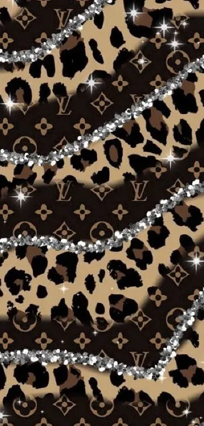 Elegant leopard print mobile wallpaper with luxury design elements and sparkling accents, perfect for a stylish phone background