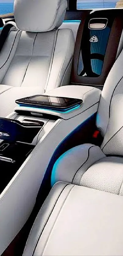Explore the sleek elegance of a luxury car interior wallpaper with plush white seating and modern design, perfect for enhancing your mobile phone's style