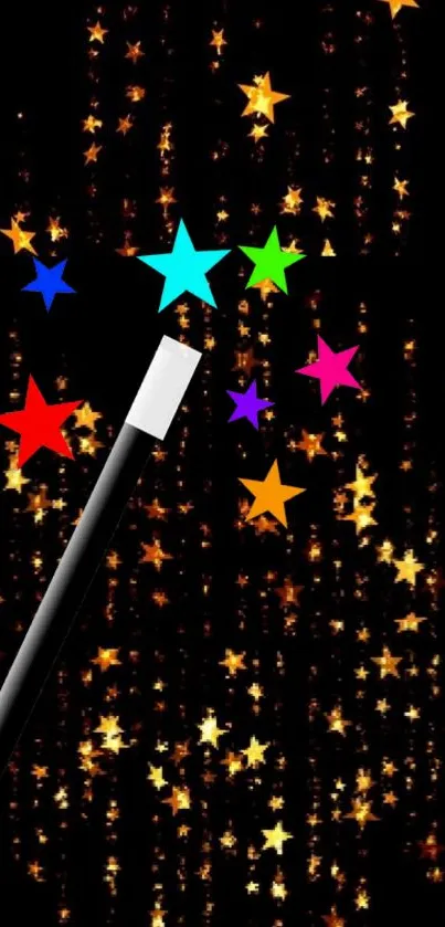 Enchant your screen with a magic wand wallpaper featuring vibrant colorful stars against a stunning golden backdrop, perfect for adding a touch of whimsy and wonder to your mobile device. Ideal for those who love magical and playful aesthetics in their digital backgrounds