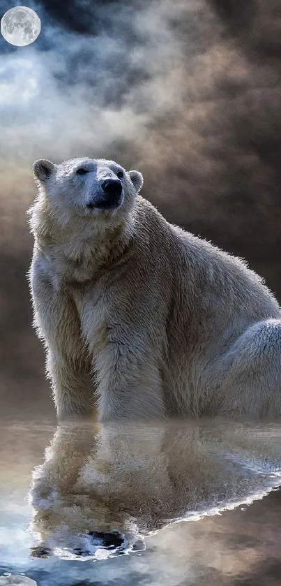 Download this stunning mobile wallpaper featuring a majestic polar bear with a moonlit reflection scene, perfect for nature and wildlife enthusiasts. The serene and dramatic imagery captures a breathtaking moment in nature