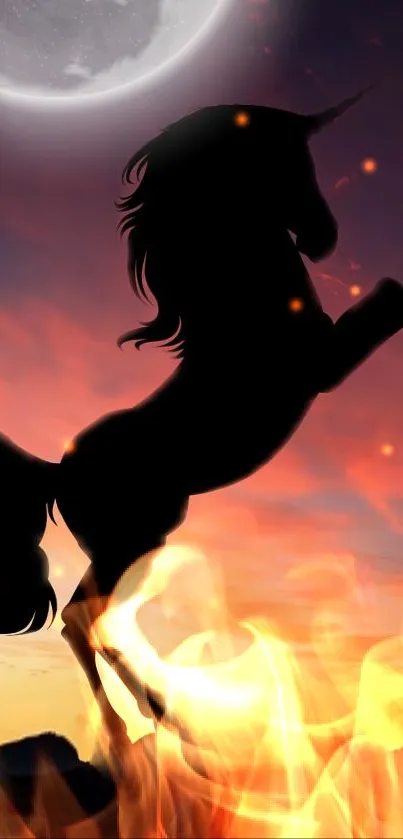 Download this enchanting mobile wallpaper featuring a majestic unicorn silhouette against a vibrant sunset sky. Perfect for adding a touch of fantasy and beauty to your phone screen