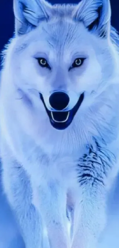 Immerse your phone with a majestic white wolf in a serene snowy backdrop, perfect for nature lovers and wildlife enthusiasts seeking a striking mobile wallpaper. This captivating image highlights the beauty of the wilderness, focusing on the wolf's piercing eyes and elegant winter coat