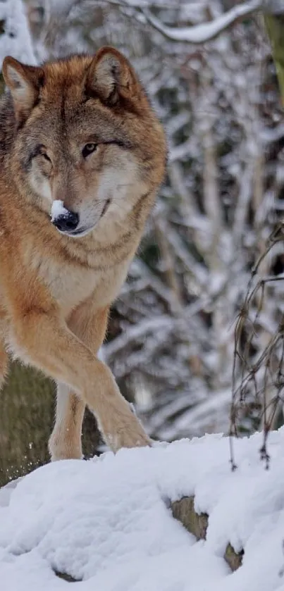 Majestic Wolf in Snowy Forest