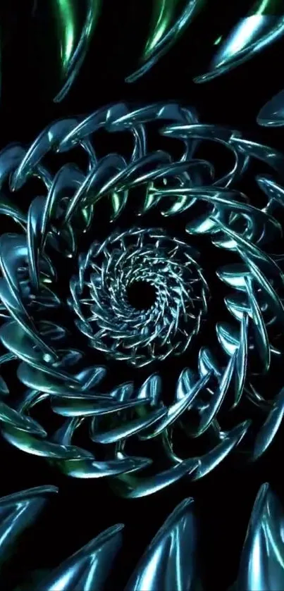 Explore this mesmerizing metallic spiral art wallpaper with dazzling blue tones, perfect for your mobile screen