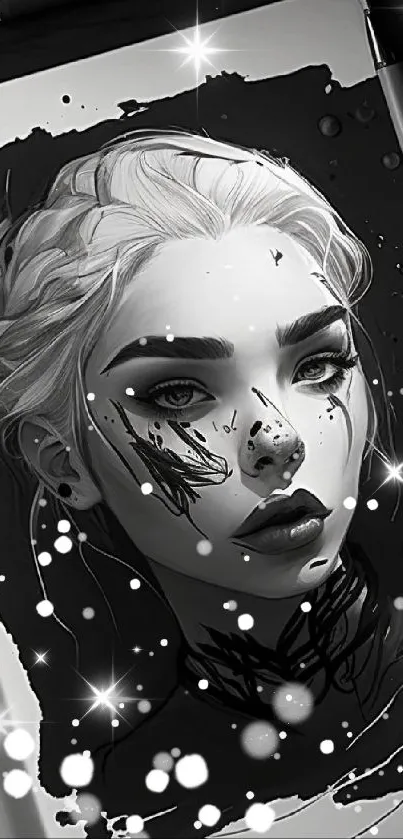 Explore the captivating monochrome artistry of a woman's portrait, blending illustration and realism, perfect for a unique mobile wallpaper. Enhance your phone screen with this intricately designed grayscale artwork, featuring expressive details and bold contrasts. Ideal for art enthusiasts