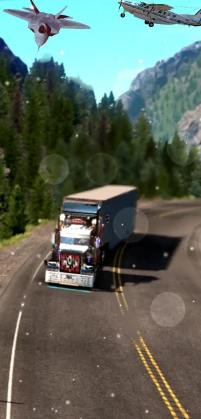 Experience the thrill of a mountain drive with an iconic truck and scenic airplane view, perfect for mobile wallpaper enthusiasts seeking adventure and nature