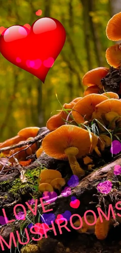 Discover a vibrant mushroom forest with a heart accent, perfect for nature lovers seeking organic aesthetics