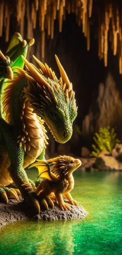 Explore a mystical dragon in an enchanted cave, perfect for immersive phone wallpaper