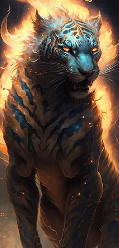 Discover a mesmerizing flaming tiger digital artwork, perfect for adding a touch of fantasy and flair to your mobile screen with its captivating and mystical design