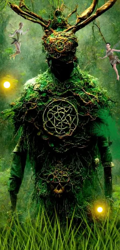 Immerse yourself in a mystical forest with this captivating phone wallpaper featuring a creature adorned with antlers and intricate natural designs, perfect for nature lovers and fantasy art enthusiasts