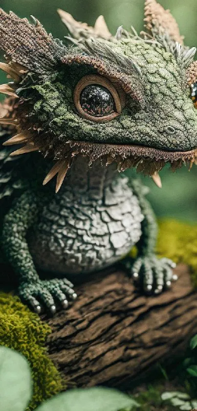 Immerse in the mystical beauty of a forest creature with this enchanting mobile phone wallpaper, featuring a cute dragon-like animal amidst lush greenery, perfect for fantasy enthusiasts