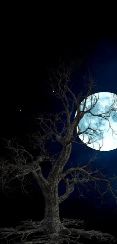 Experience tranquility with this mystical moonlit tree wallpaper, featuring a glowing full moon and ethereal dark tree, perfect for nature enthusiasts seeking a serene and mysterious vibe on their mobile devices