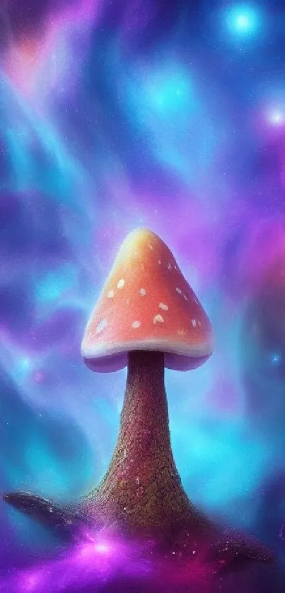 Explore the enchanting mystical mushroom floating in a cosmic space art setting, ideal for vibrant mobile wallpapers