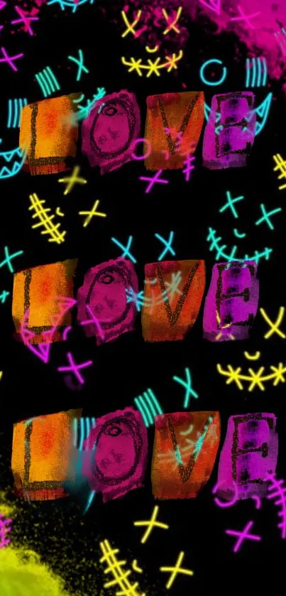 Vibrant neon smiley face pattern wallpaper with black background, perfect for a playful phone screen