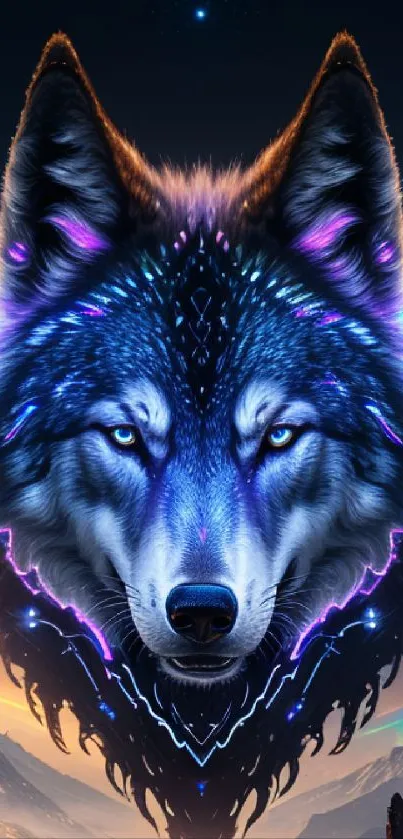 Explore a stunning neon wolf fantasy wallpaper for your mobile. Featuring vibrant colors and a cosmic background, this design blends art and technology, creating a captivating and artistic look for your device. Perfect for nature and fantasy lovers seeking a unique visual experience