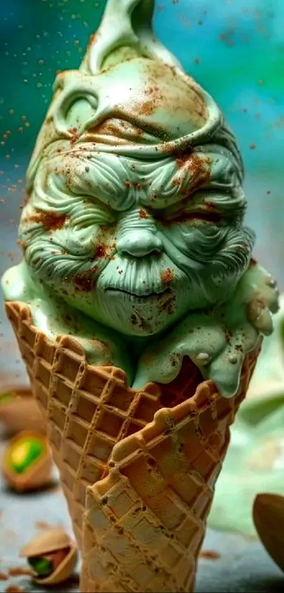 Discover this unique mobile wallpaper featuring an artistic ice cream sculpture with intricate details, blending whimsy and culinary art