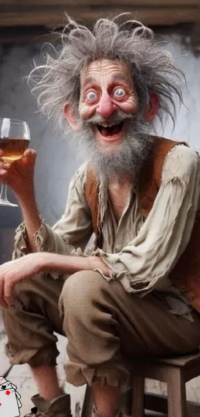 Explore the whimsical charm of a quirky character enjoying a glass of wine, adding a touch of humor to your mobile screen