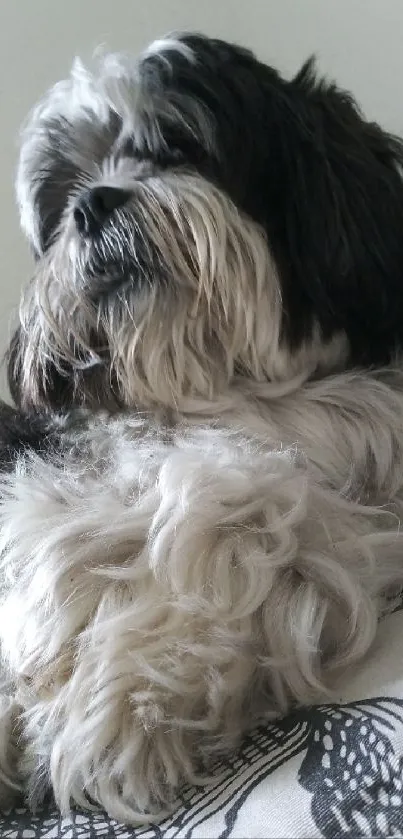 Download this calming mobile wallpaper featuring a relaxed dog, perfect for pet lovers seeking a serene background