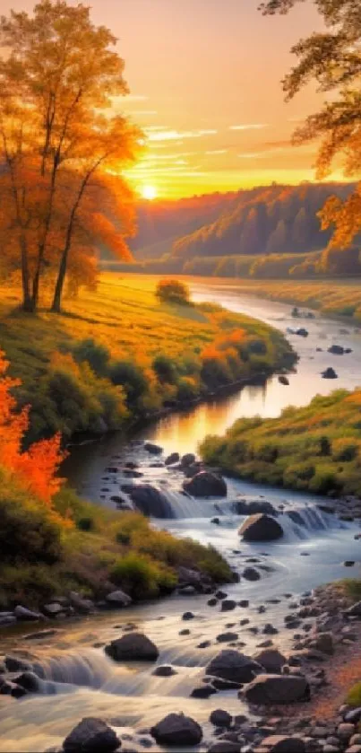 Immerse in the serene beauty of an autumn landscape with this vibrant river and colorful foliage wallpaper, perfect for bringing nature's tranquility to your device's screen