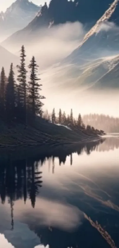 Download this serene mountain lake wallpaper featuring breathtaking reflections at sunset, perfect for bringing nature's tranquility to your mobile screen