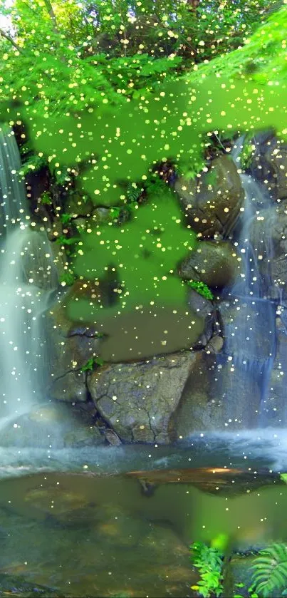 Experience tranquility with this serene waterfall mobile wallpaper showcasing lush greenery and tranquil water, perfect for nature lovers seeking a peaceful backdrop