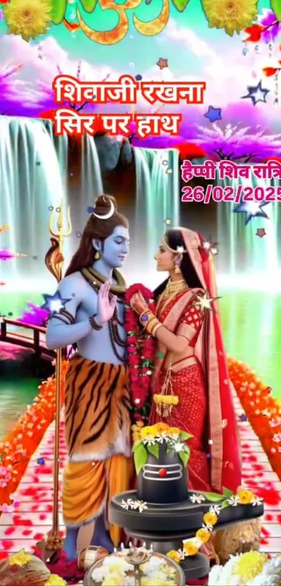 Experience divine tranquility with this mobile wallpaper featuring Lord Shiva and Parvati, perfect for spiritual and festive occasions