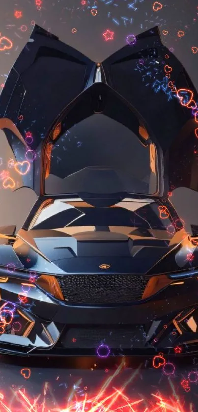 Download this stunning black sports car mobile wallpaper featuring sleek design and glowing accents. Perfect for car enthusiasts seeking a high-definition automotive background for their phone