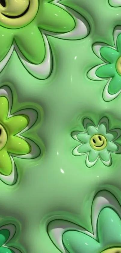 Brighten your device with a whimsical design featuring smiley face flowers in vibrant shades of green