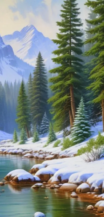 Discover tranquility with this snowy mountain and forest wallpaper, offering serene winter scenery