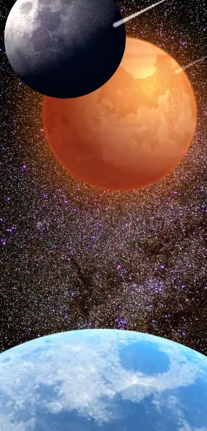Explore a stunning space-themed mobile wallpaper featuring planets against a starry galaxy, perfect for astronomy lovers seeking unique cosmic aesthetics