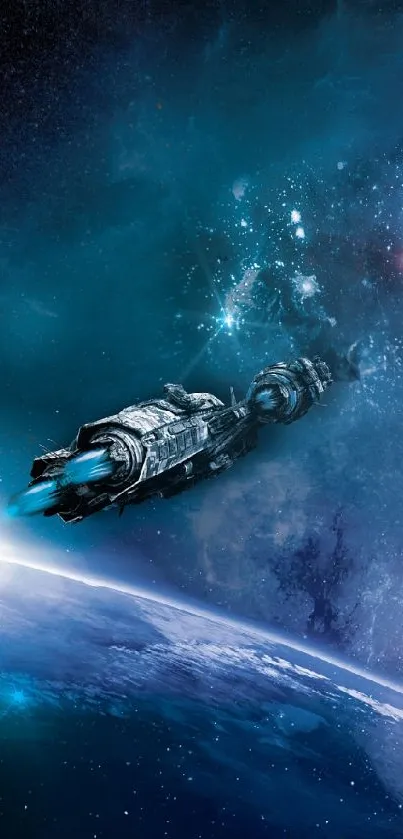 Explore the wonders of space with this stunning mobile wallpaper, featuring a sleek spaceship traveling through a vibrant galaxy, complete with stars and a mysterious portal