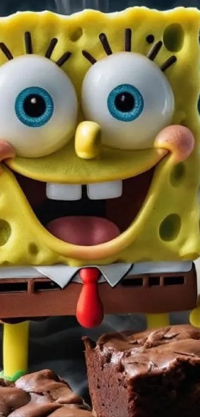 Enjoy the vibrant SpongeBob SquarePants wallpaper for your mobile device, featuring the iconic character in a playful scene with delicious brownies, perfect for cartoon lovers