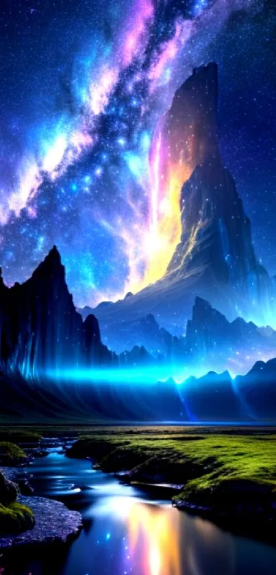 Discover a stunning galaxy theme mobile wallpaper featuring a majestic mountain and vibrant stars, perfect for enhancing your device's screen with breathtaking cosmic beauty and vivid colors