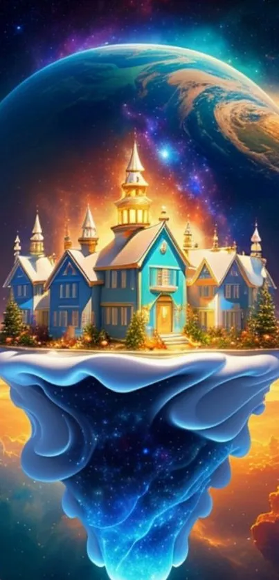 Discover an enchanting floating castle in space with vibrant colors, perfect for your phone's backdrop
