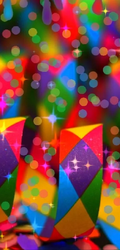 Discover a vibrant abstract mobile wallpaper featuring colorful spirals and confetti, perfect for adding personality and style to your phone screen. Ideal for those who love bold, festive designs with a touch of artistic flair