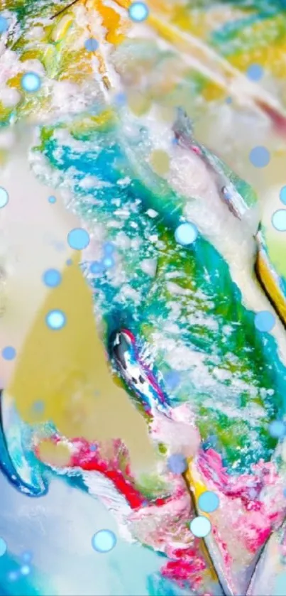 Explore the vibrant abstract splash wallpaper featuring dynamic blends of colors and patterns, perfect for adding creative flair to your mobile screen. This captivating background image combines artful splatters of blue, green, yellow, and pink hues, creating a unique visual experience