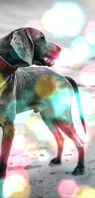 Explore a captivating mobile wallpaper featuring a majestic dog with vivid bokeh lights, perfect for animal lovers seeking a blend of elegance and artistic flair