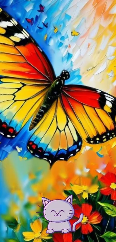 Download a vibrant butterfly art wallpaper featuring a colorful butterfly with flowers, ideal for adding a splash of color to your mobile phone background