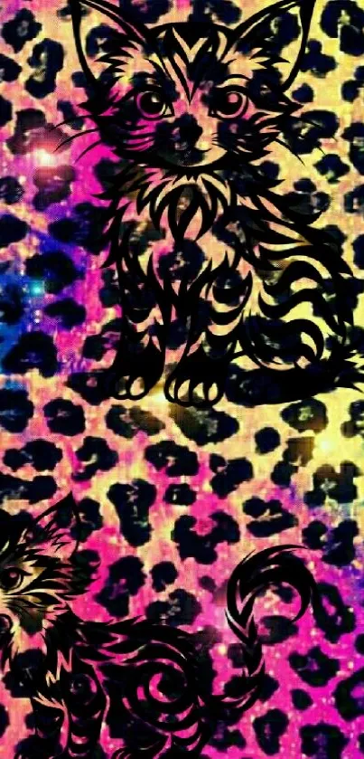 Download this vibrant cat-themed mobile wallpaper featuring a colorful leopard pattern for a quirky and lively look. Ideal for animal lovers and those who enjoy playful, artistic designs. Perfect to personalize your smartphone with unique and vivid artwork