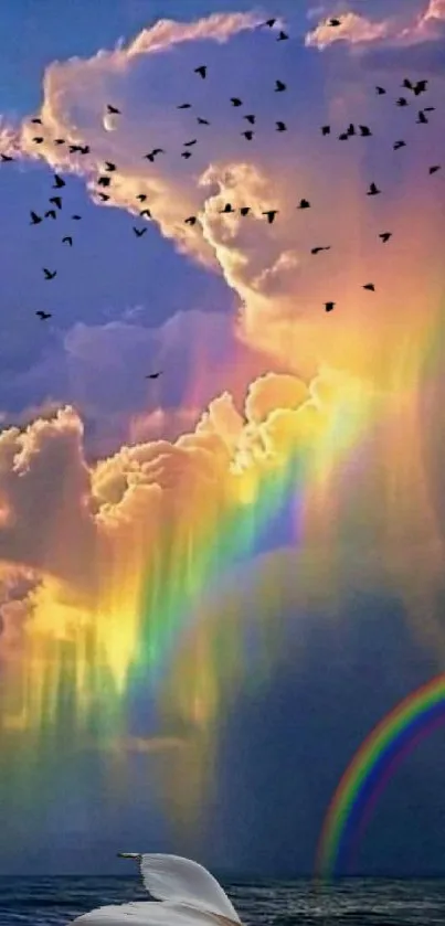 Experience the beauty of nature with vibrant clouds and a rainbow sky, perfect for mobile wallpaper