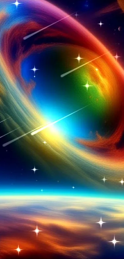 Experience the vibrant hues and swirling colors of a cosmic nebula in this stunning mobile wallpaper, perfect for adding a touch of celestial beauty to your device